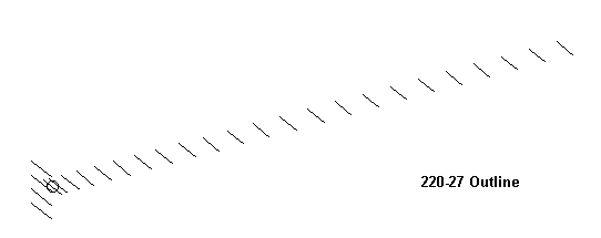 Model 220-27 Dimensions (in inches): Element Diameter 0.25" Element Length/Height Space from Reflector Reflector 1 25.99/17.20 ---- Reflector 2 25.99/ 5.73 ---- Reflector 3 25.99/-5.73 ---- Reflector 4 25.99/-17.20 ---- Driver 25.00 10.61 Director 1 23.47 14.58 Director 2 23.01 24.14 Director 3 22.63 35.54 Director 4 22.47 48.80 Director 5 22.32 63.66 Director 6 22.09 79.56 Director 7 21.86 96.27 Director 8 21.55 113.78 Director 9 21.55 132.08 Director 10 21.55 151.18 Director 11 21.25 171.06 Director 12 21.25 191.76 Director 13 21.25 212.97 Director 14 21.02 234.19 Director 15 21.02 255.40 Director 16 21.02 276.62 Director 17 20.79 297.84 Director 18 20.79 319.06 Director 19 20.79 340.28 Director 20 20.64 361.50 Director 21 20.64 382.72 Director 22 20.64 403.93 Modeled Performance Parameter 222 MHz 223.5 MHz 225 MHz Gain dBi 18.12 18.39 18.62 180-deg F-B 29.28 34.05 23.78 -3dB Beamwidth 24.2 23.6 23.0 Impedance (R+/-jX) 47.4 - j 2.6 51.0 - j 4.6 45.8 - j 7.8 50-Ohm SWR 1.08 1.10 1.20