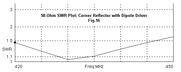 Like the double-diamond, the corner reflector array offers full coverage of the band, as evidenced by the curve in Fig. 16.