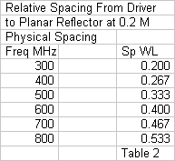 The most fundamental question in the present context concerns the useful frequency range for a given planar reflector. Planar reflectors with ordinary drivers having modest bandwidths showed remarkably stable operating characteristics across the SWR bandwidths. However, none of the drivers stressed either the spacing between the driver and the reflector or the reflector size within the limits of operation. Hence, none of the drivers provided data on the potential limits of a planar reflector.