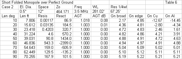 The table is only a first-order estimation device, not a precise gauge. For increased accuracy, you would need to model a proposed short folded monopole using both the actual material ad the actual ground conditions at the proposed site--along with a model of whatever buried radial system the antenna might use.