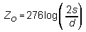 The table rests on calculating the characteristic impedance (Zo) from the physical dimensions of parallel wires, as indicated in Fig. 1. One common equation for the calculation uses common logs.