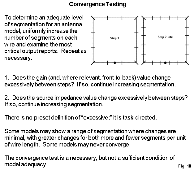 Fig. 4: Some Modeling Practices to Avoid: As with the list of good practices, this list of practices to avoid is incomplete, but a potential foundation for a user-specific list of things to avoid. Some practices, such as using a stepped-diameter element, have correction features in some implementations of NEC-2. NEC-4 has overcome much of the inaccuracy involved in stepped diameter elements, but AGT values for large diameter changes may still be disappointing. The remaining practices to avoid apply equally to NEC-2 and NEC-4, with the exception of the ground warning, which applies to NEC-2 only.