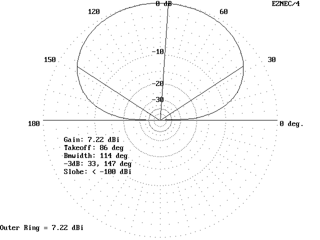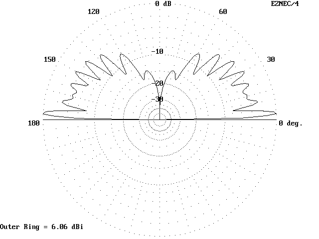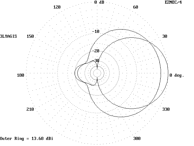 Construct the model for this beam in the horizontal plane. Bring up the azimuth pattern (4 degree take-off angle at a 25' height). From the HF exercises, students will recognize the typical Yagi pattern.