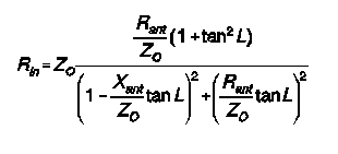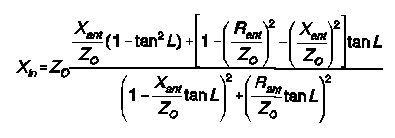 Because this equation for Zin requires that we separate the "real" and the "imaginary" (j) terms and perform other operations to obtain the desired values, we sometimes use a pair of equations that will directly calculate the input impedance in terms of R and jX, the resistance and reactance respectively. These are handy, since we usually are given the antenna feedpoint impedance in terms of R and jX.
