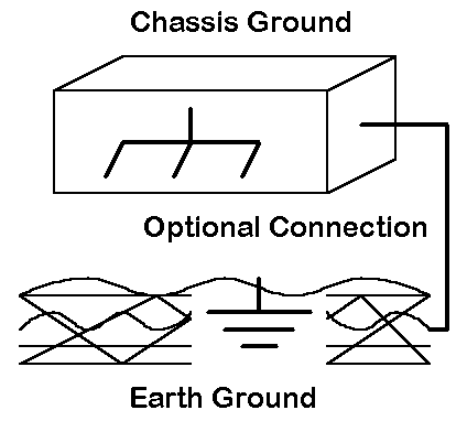 For example, we refer to a "chassis ground" (and this is accepted practice). However, the chassis ground is only the circuit common against which measurements are made. It also offers us a connection point for placing the chassis in common with the earth (often called an "earth ground"). As the figure shows, we use separate schematic symbols in the U.S. to differentiate chassis ground from earth ground.