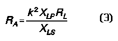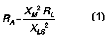 where RA is the resistive impedance coupled back to the primary, XM is the reactance of the mutual inductance between coils, and XLS is the reactance of the secondary inductor (or capacitor) at secondary resonance on the operating frequency.