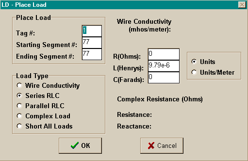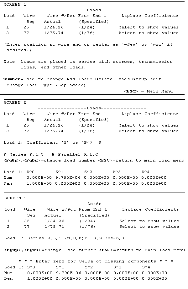 Besides allowing the user to enter a load line in the antenna description, NEC-Win Pro provides two other means for entering load data. One is the load screen accessed from the load line.