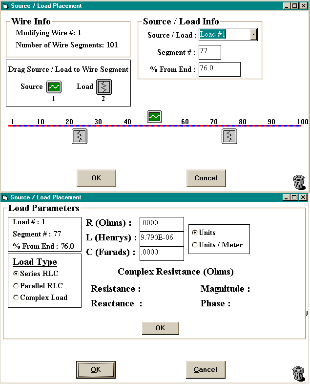 Although the data is the same, this screen set permits us to specify the load position as a percentage of element wire length.