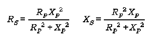 where Rs and Xs are the series values of resistance and reactance and Rp and Xp are the corresponding parallel values of resistance and reactance.