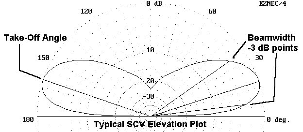 However, none of the SCVs permit unlimited heights without losing much if not all of the low angle radiation advantage. As you elevate any of the SCVs, a second lobe appears at a high angle. Eventually, at a height specific to each antenna type, the higher angle secondary lobe becomes the primary lobe.