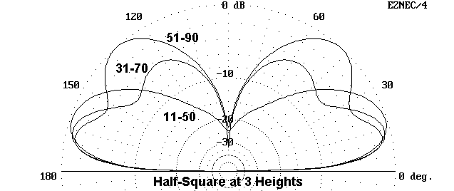 Figure 8. Elevation patterns for a half square antenna at three different heights.