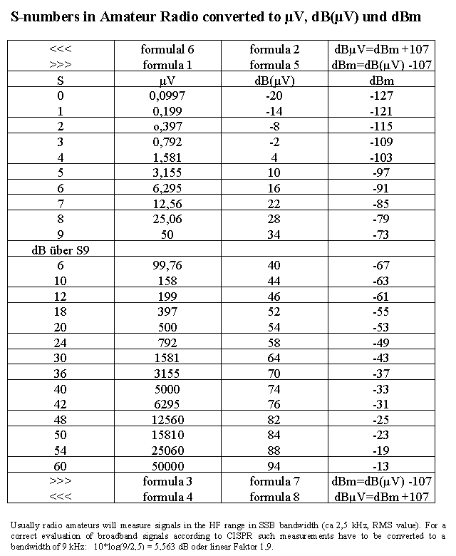 A precise system of conversion requires--if it is to handle both signal and noise sources--a bandwidth for measurement as well as a signal strength reading. I am indebted to Hans-Joachim Brandt, DJ1ZB, leader of the study group of DARC (Deutscher Amateur Radio Club) for providing the table that they are submitting to the German national standards organization. Once fully accepted in Germany, the table may well be distributed widely among national government agencies and (hopefully) among receiver makers.
