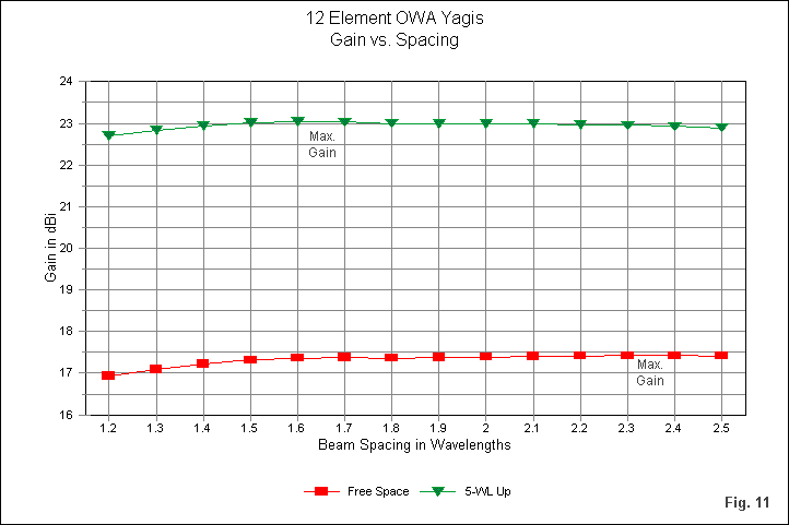Table 11 and Fig. 11 provide comparisons of the free-space and above-ground models of the 12-element OWA Yagi.