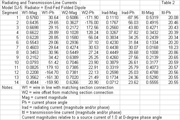 The radiator sections of all models used 14 segments. Table 2 shows the results of sorting the radiation from the transmission-line currents at corresponding points along the radiator of model SJ-5, where segment 1 is at the bottom and segment 14 is at the top.