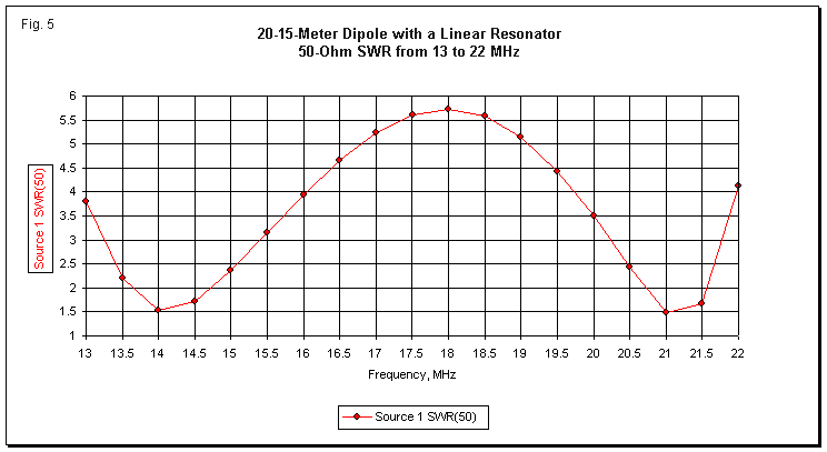 These notes have not aimed at producing a buildable design for a dual-band 20-15-mter dipole with a linear resonator. Instead, they have had as their goal an examination of some of the basic properties of such an antenna, along with an exploration of the effects of varying parts of the structure. The numbers are less important than the trends, which an experimenter may use with almost any frequency combination and with any materials. Indeed, the ultimate goal is to make linear-resonator techniques sufficiently familiar to encourage further experimentation and exploration.