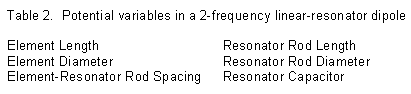 The sketch indicates some of the structural variables in a linear resonator dipole. Table 2 provides a more complete list.