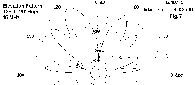 To establish that Fig. 6 is no fluke, Fig. 7 is the elevation pattern for the antenna at 15 MHz.