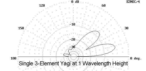 1. Baseline 3-element Yagi Characteristics: 1 antenna by height in wl: