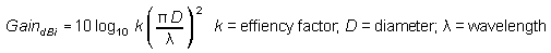 Finally, we should note the gain values for the dipole driver. A number of texts provide an equation to calculate the gain of a dish relative to its diameter at the frequency of use.