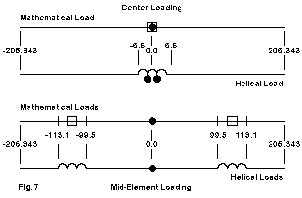 The use of Type 0 loads to characterize both center and mid-element loading strongly suggests that there is little difference between the gain potential of two antennas of equal length loaded in each manner. However, physically modeled loading helices tell a quite different story. Not only do both types of loaded antennas potentially perform better than mathematically inserted loads would indicate, but as well the empirical experience giving the nod in gain to mid-element loading gains some support from the physically modeled loading coils.