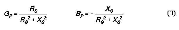 The equations in set (3) provide us with the conversion formulas to apply to the series resistance (0.2345 Ohms) and reactive (46.9 Ohms) in order to arrive at usable numbers. The resulting values appear in Fig. 8. The result, when the model is run, is a source impedance of 49.0 - j 0.0 Ohms, which is in very close agreement with the transmission stub result we just finished examining. However, the network result is as limited as the R-X load technique: it is correct for only the single frequency for which it is specified.