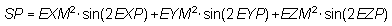 "E" is a stand-in for either the voltage or the current. There is no difference in the calculation procedures. Next, let's calculate some intermediate terms involving the phase angles, finally arriving at a term called "TP."