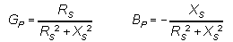 As a special form of a network, the TL command allows the use of shunt admittance values at either end of the line for various simulation purposes. In this case, instead of using a stub, we specify a very short line length. The line is so short that no significant transformation of voltage, current, or impedance can occur. On the "far" end of the line, we insert the shunt admittance equivalents of the series values of resistance and reactance that we need for the match. The real component of an admittance (Y) is conductance (G), and the imaginary component is susceptance (B). Since the conversion requires converting a series impedance into a shunt or parallel admittance, we may use these equations: