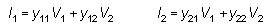 Consider a real component network, such as the central part of Fig. 2. One form of analysis that we can perform (A) is to short-circuit the output and apply a voltage to the input. Then we can reverse the procedure (B), applying a voltage to the output side with the input side short circuited. Under these conditions, the following relationships will hold.