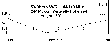 The Knoxville, TN, area has repeaters from close to 145 MHz up to nearly 148 MHz. All of them are easily accessed and heard at full quieting from my location with only a low elevation ground-plane vertical. In fact, a telescoping whip on my hand-helds will access all of our main repeaters. On a 15' mast, the Moxon made "telephone" copy of all of the repeaters when the antenna pointed anywhere near the forward direction to them. A distant repeater that I hear poorly on a vertical was now full quieting. The Moxon's gain can make a difference for signals at the FM threshold.