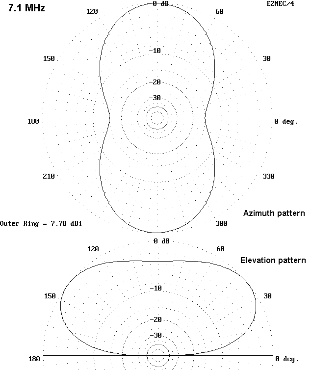 The 80-meter azimuth pattern is taken at an elevation angle of 45 degrees. As the elevation pattern shows, most of the radiation is above this angle. Some hams call the relatively low dipole a cloud- burner. Although this is not a DX antenna, there is plenty of useful radiation for all kinds of excellent 80-meter QSOs.