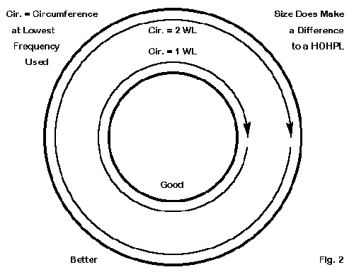 Although I shall be speaking in terms of 1 wl and 2 wl HOHPLs, there are no rules against making them even larger or against making them some non- integral multiple of a wavelength. In some respects, we can say with assurance that performance of a 1.5 wl HOHPL will be intermediate between a 1 wl and a 2 wl version. However, as we shall discover, there are enough variations in the performance of a 1 wl HOHPL to make my claim fall among the world's most vague statements.