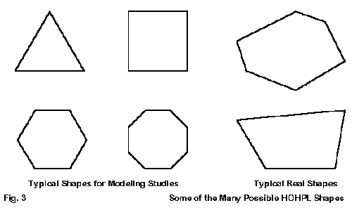 Fig. 3 Illustrates some of the typical geometries used in constructing making HOHPLs of both regular and irregular shape. We shall from here on confine ourselves to the regular shapes. Our reason is a matter of both the general application of the ideas and the ease of making calculations.