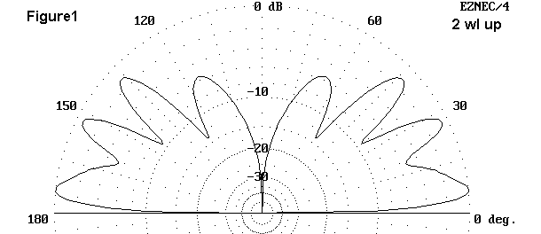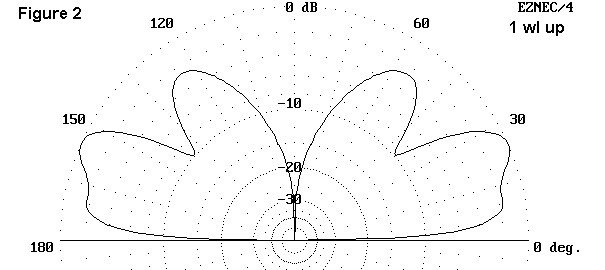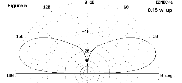 As is evident if Figure 4, when the base of the plane reaches about 0.25 wl, the lower lobe again dominates, although high angle radiation is readily apparent. A similar pattern appears as self-contained vertical 1 wl wire antennas are raised "too high."