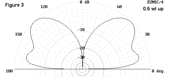 In Figure 3, at a half wavelength up, high angle radiation dominates, although over salt water, there is a strong lower lobe.