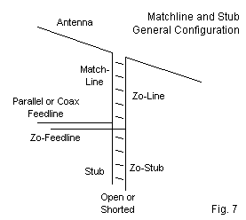 Of all of the matching systems included in the spreadsheet pages, the match-line and stub system may be the oldest. We use it to match odd antenna impedance values--such as values we might obtain from an extended double zepp antenna--to a standard feedline. Fig. 7 outlines what we require.
