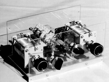 Two strips of L-stock hold the chassis plate off the table. The coils and capacitors mount on this plate. A set of "ground" connections run under the plate and link all parts, as well as the rails and a small aluminum plate at the rear on which the input and output coax connectors are mounted. Exact techniques depend on the components one finds in a junk box. A handful of 6-32 machine screws, nuts, and lock-washers (with a few 8-32 pieces to mount the coils) is all the hardware the project requires.