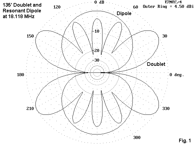 As Fig. 1 demonstrates, these problems are correctly diagnosed. Compared to dipole cut for 17 meters, the pattern for the doublet on 17 has many thin fingers. On 15 and 12, there will be more fingers, and thinner.